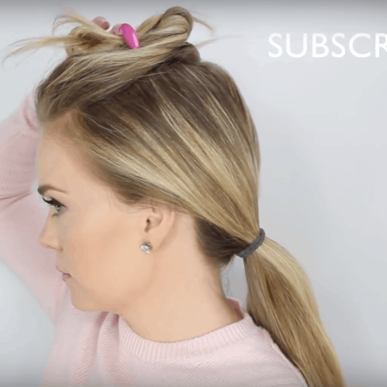 This look is both feminine and edgy but it’s so easy to do. Simply section hair so that there is enough at the top of your head for a braid. This can best be done by creating two deep parts on the side of your head, with the middle section of hair being the area you will use to braid. Begin to dutch braid this section. Stop braiding once you begin to reach the part where your head begins to curve. Tie the hair into a loose bun and pin down. The rest of your hair can be curled or left straight; either way it’s perfect!